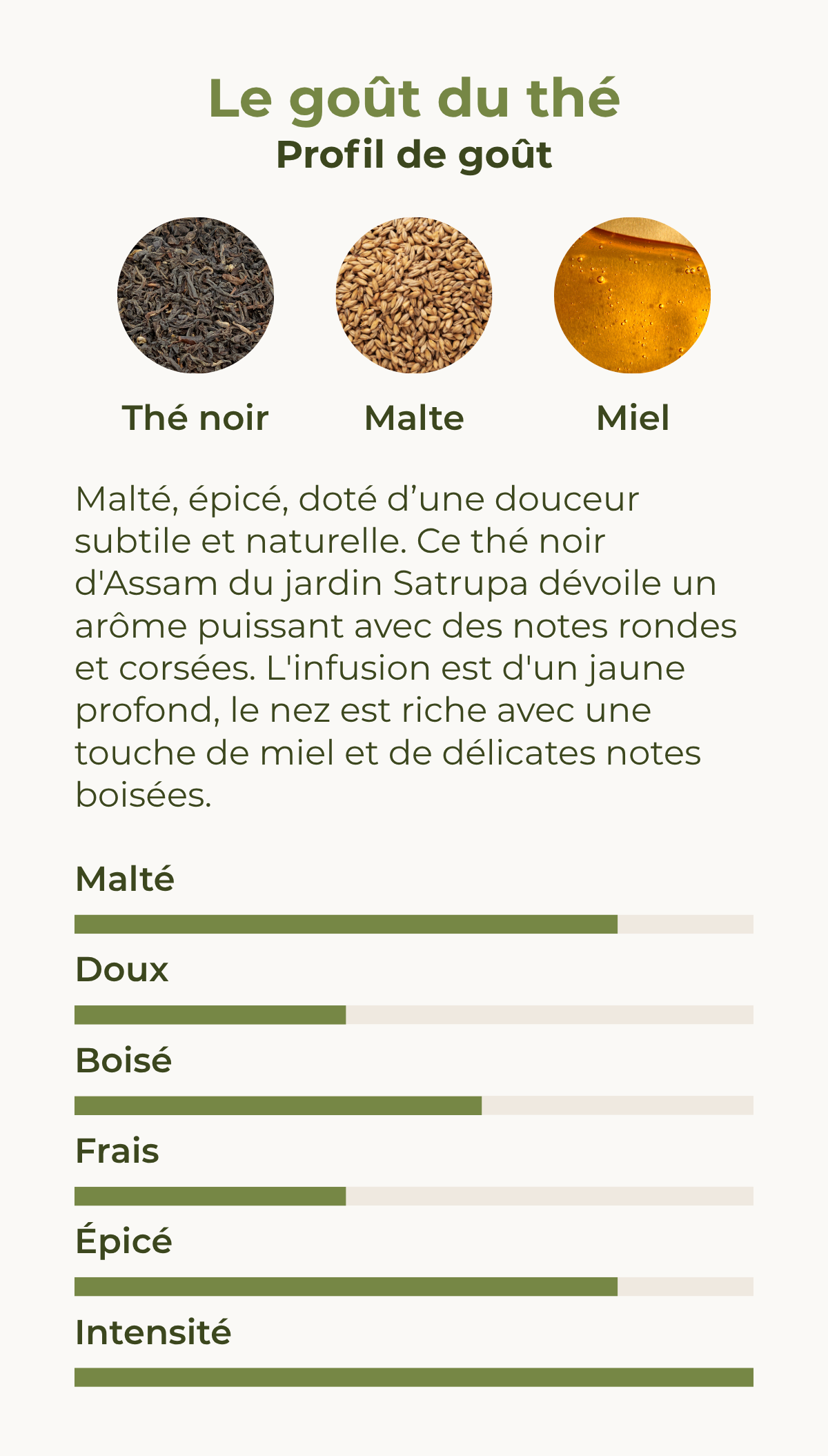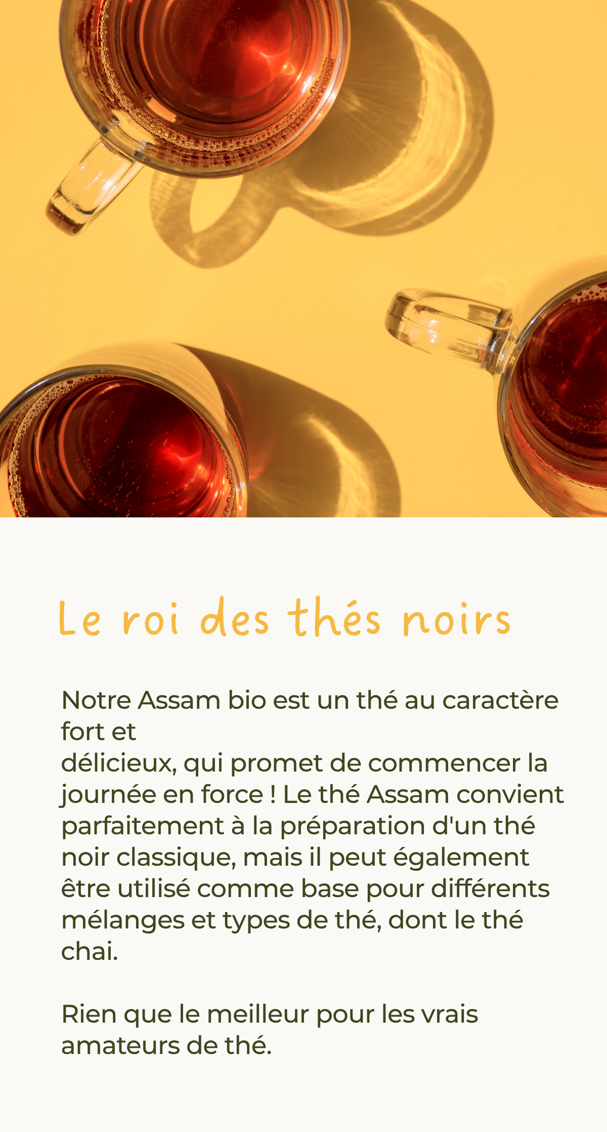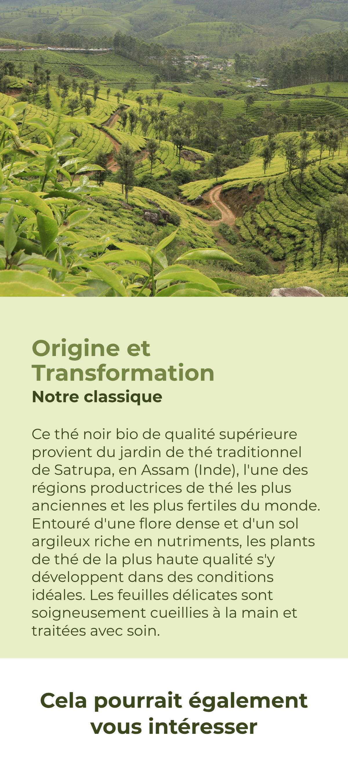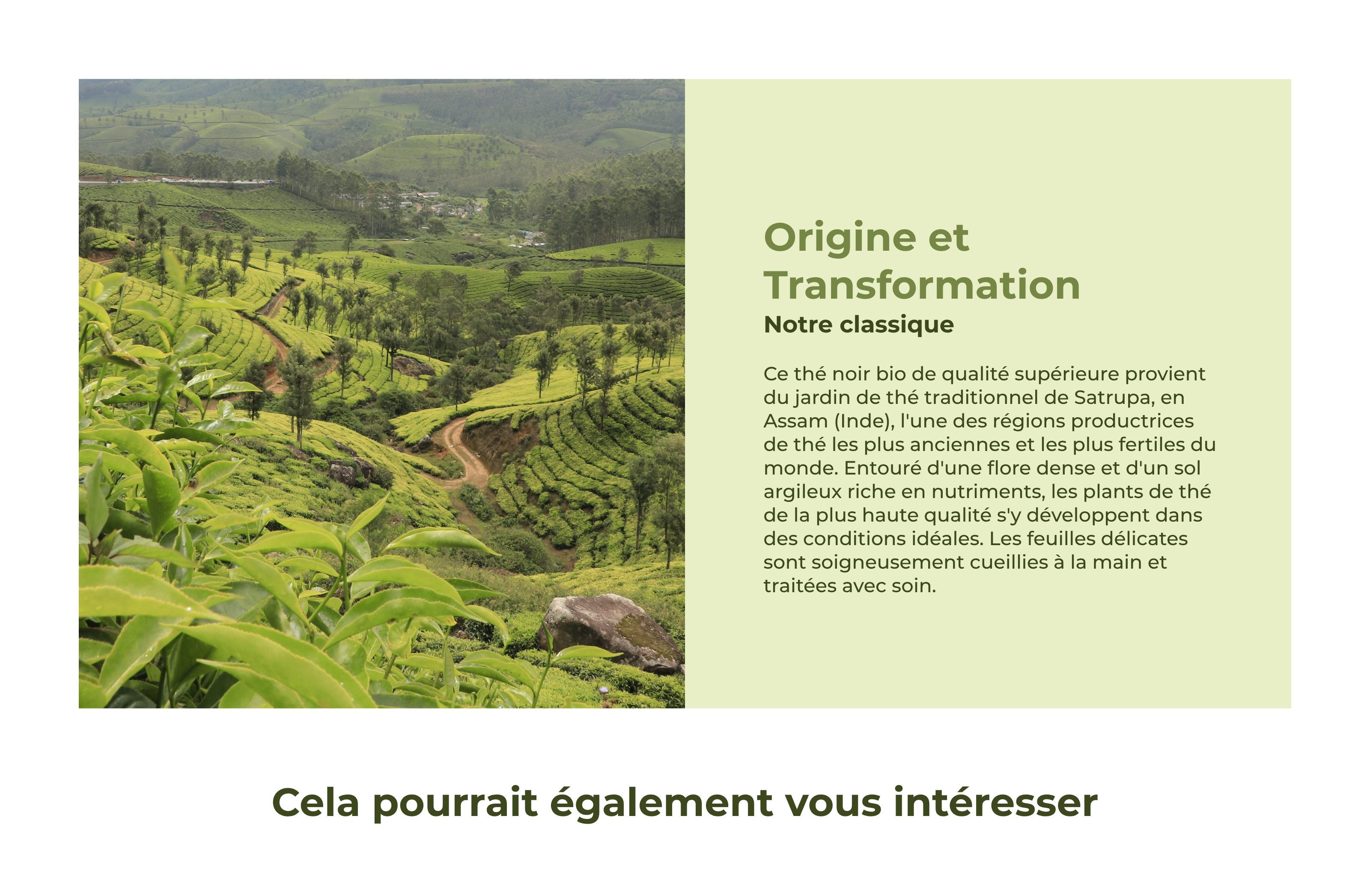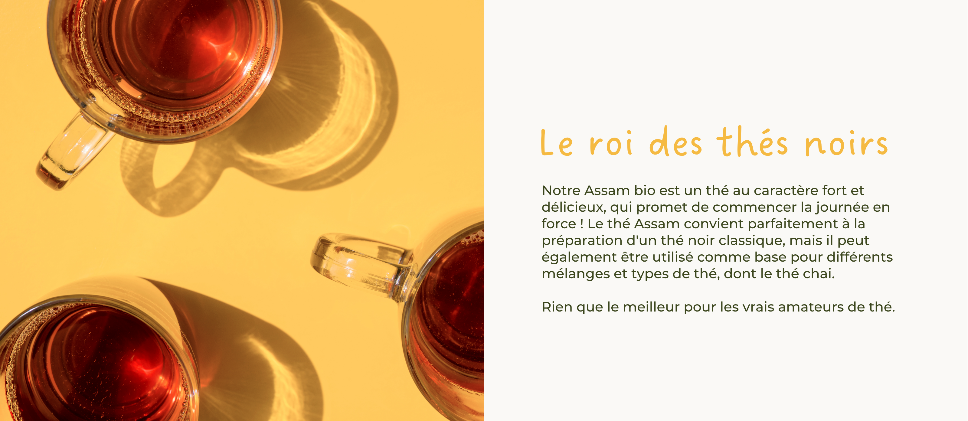 Découvrez le goût incomparable du véritable thé Assam - une révélation aromatique des hauts plateaux pittoresques du Brahmapoutre.