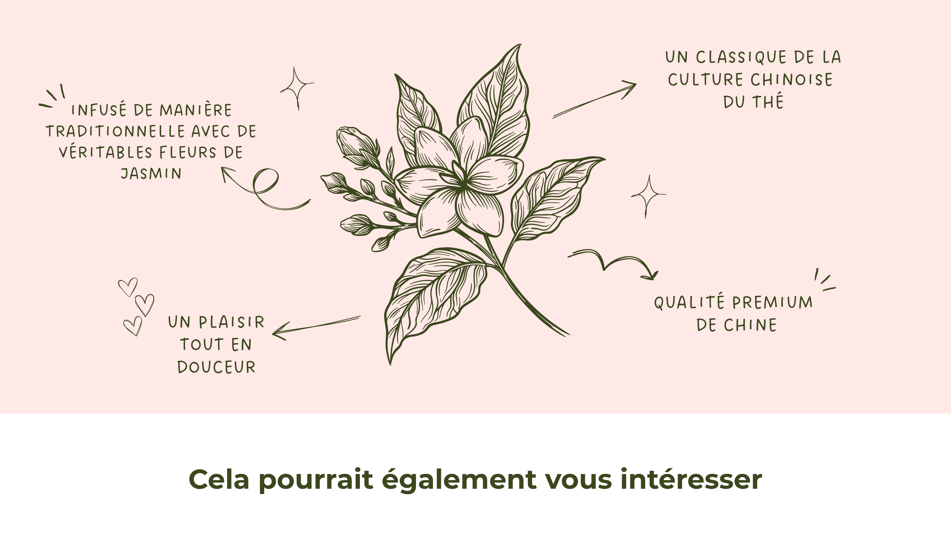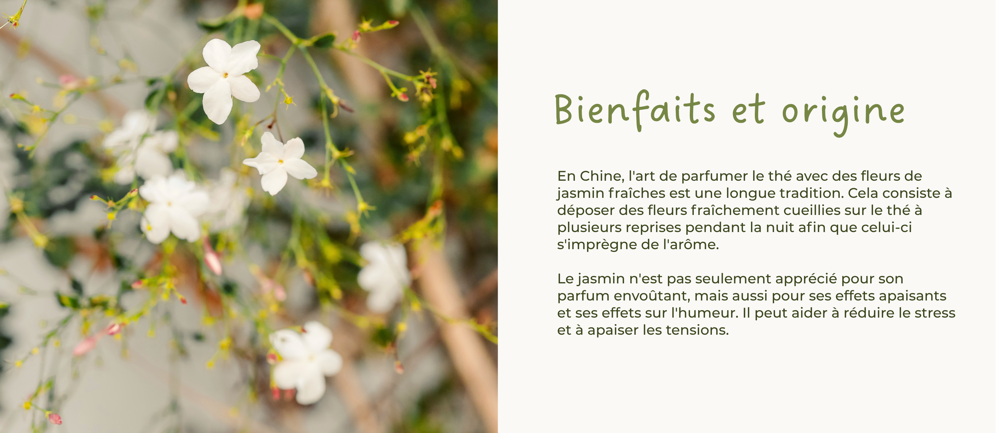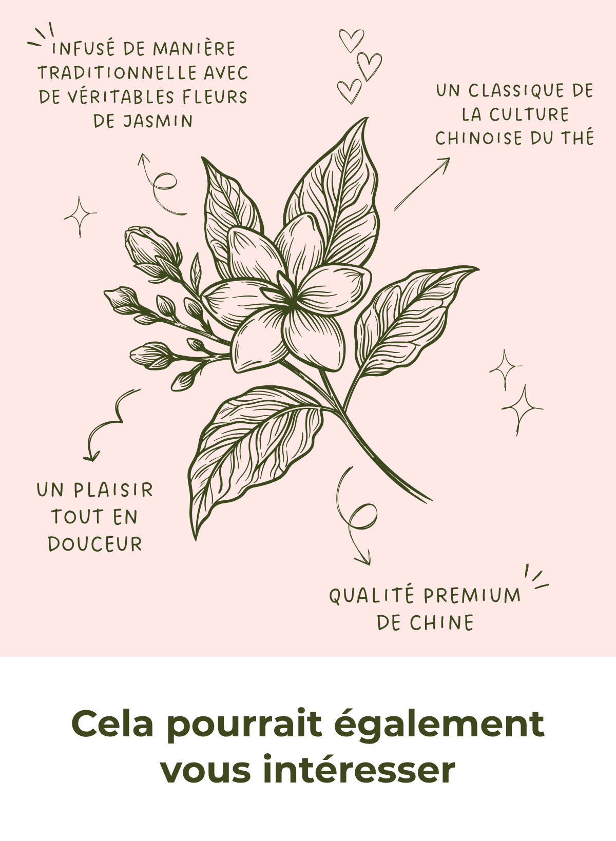 Le thé vert et l'essence délicate de la fleur de jasmin se fondent dans notre thé au jasmin pour créer une expérience olfactive et gustative particulière.