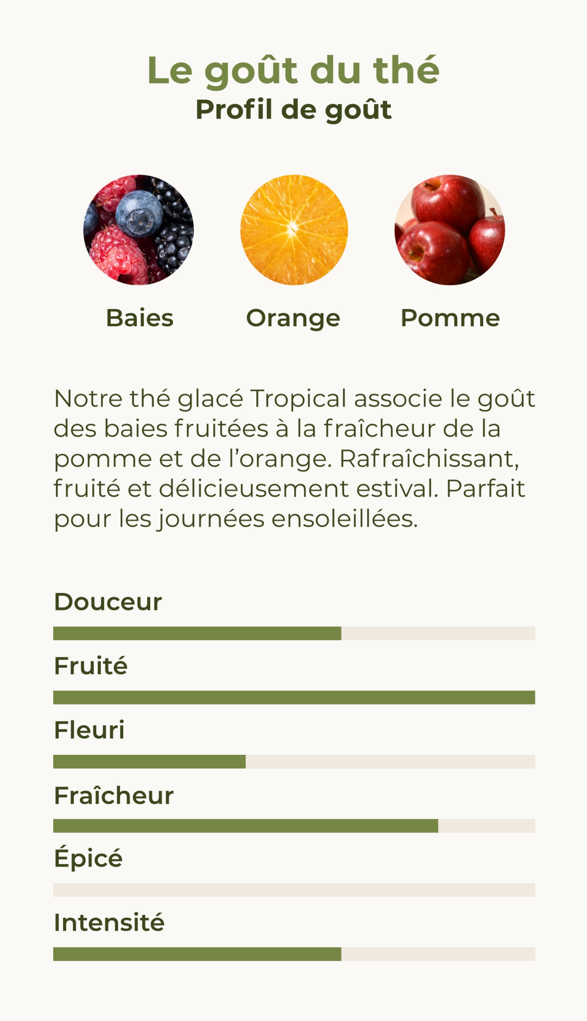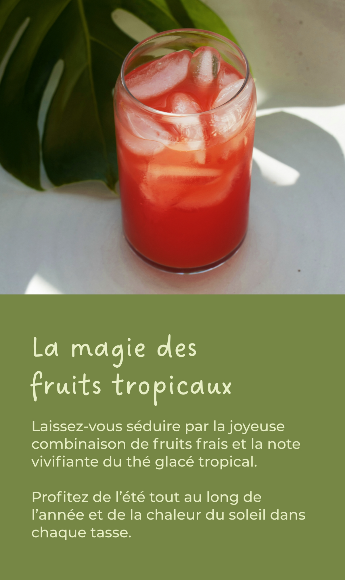 Découvrez notre mélange de thés aux fruits exotiques, au goût de fruits rouges et d'oranges mûries au soleil ! Plongez dans un paradis tropical et faites-vous plaisir.