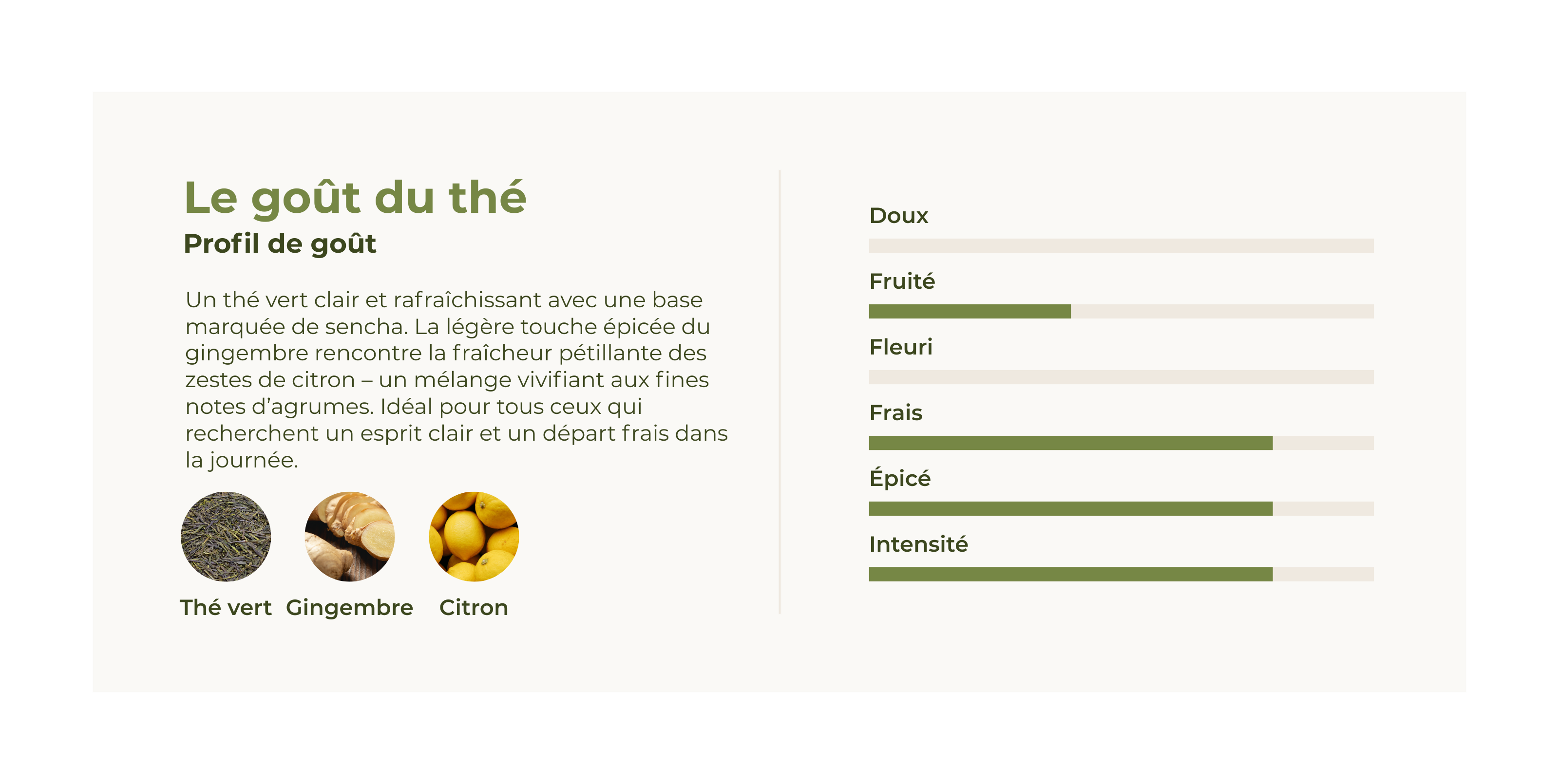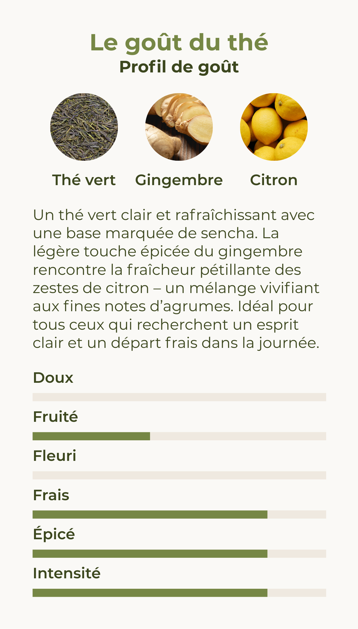 Le vert tonique associe la puissance vivifiante du thé vert à la fraîcheur du citron et au piquant épicé du gingembre, le tout complété par un doux coup de pouce de la caféine pour une énergie durable. Ce thé énergétique est le choix parfait pour tous ceux qui souhaitent stimuler leur corps et leur esprit de manière naturelle. Profitez du goût pétillant et de l'effet puissant du Green-Boost !
