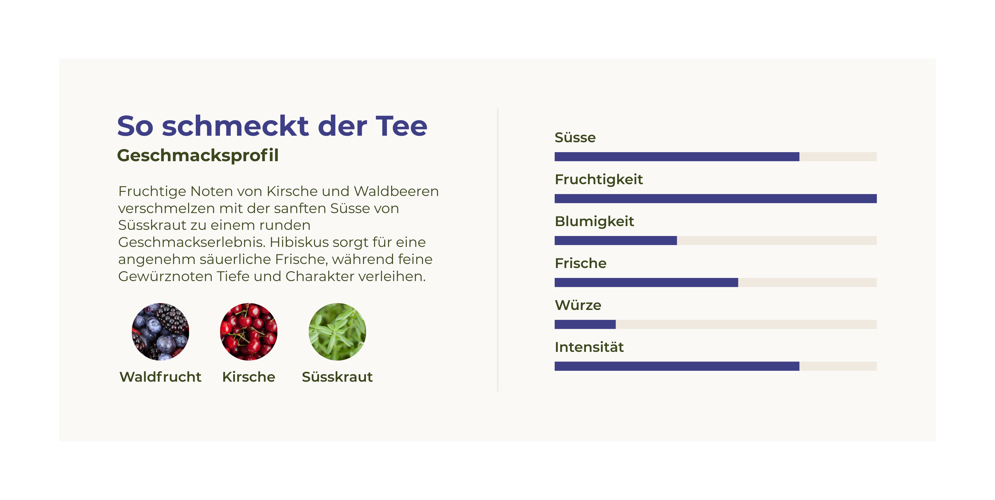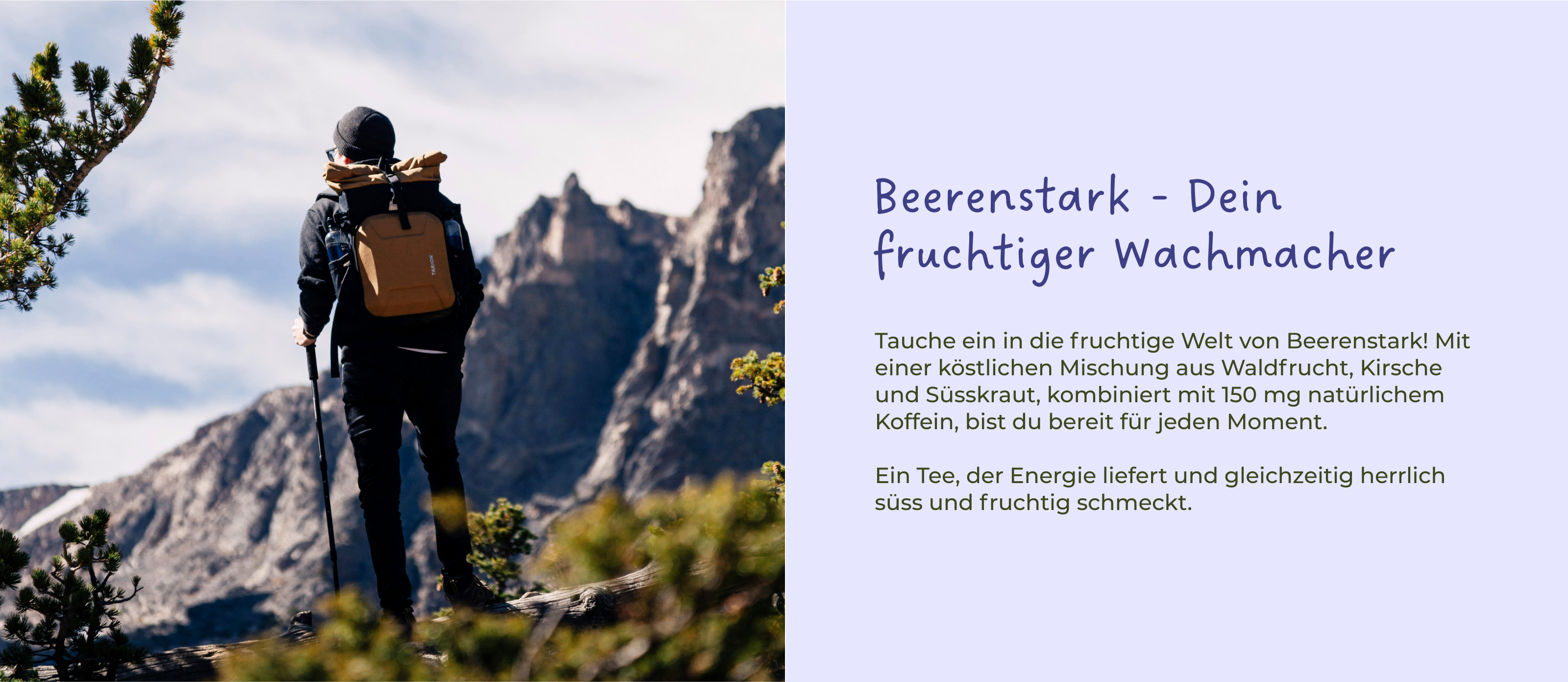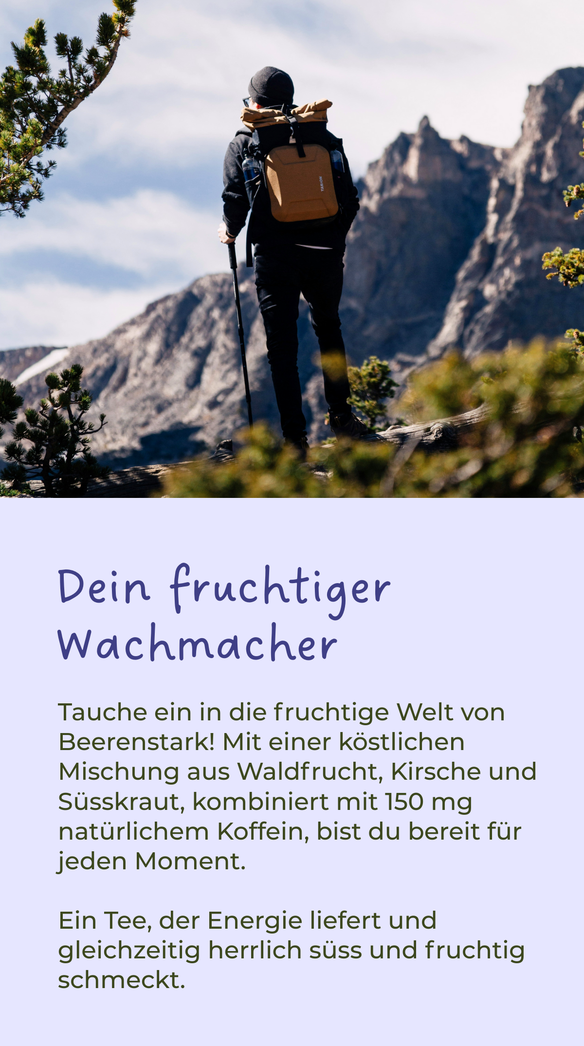 Entdecke die Kraft von Beerenstark! Mit einer harmonischen Mischung aus Waldfrucht, Kirsche und Süsskraut, begleitet von natürlichem Koffein, bist du bereit für alles. Fruchtig, süss, wach - perfekt für jede Gelegenheit.