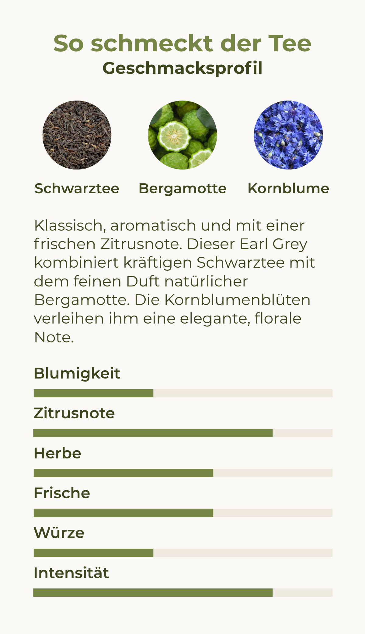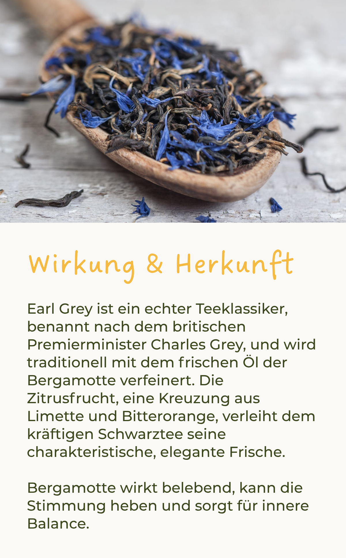 Entdecke die zeitlose Eleganz von Earl Grey, veredelt mit dem erfrischenden Aroma von Bergamotte! Die perfekte Balance zwischen kräftigem Schwarztee und zitronigen Frische. Probier' unseren Earl Grey mit Bergamotte-Aroma für eine raffinierte Tasse Tee, die Tradition und Geschmack vereint.