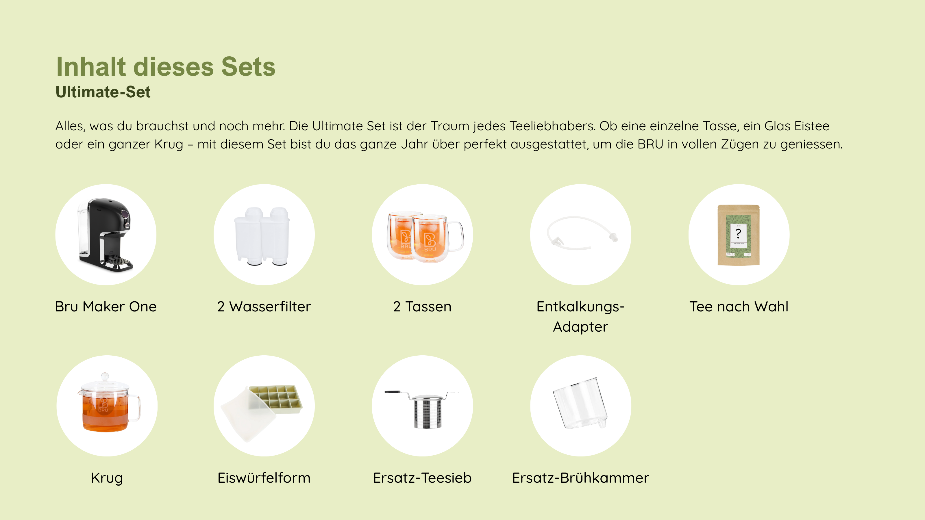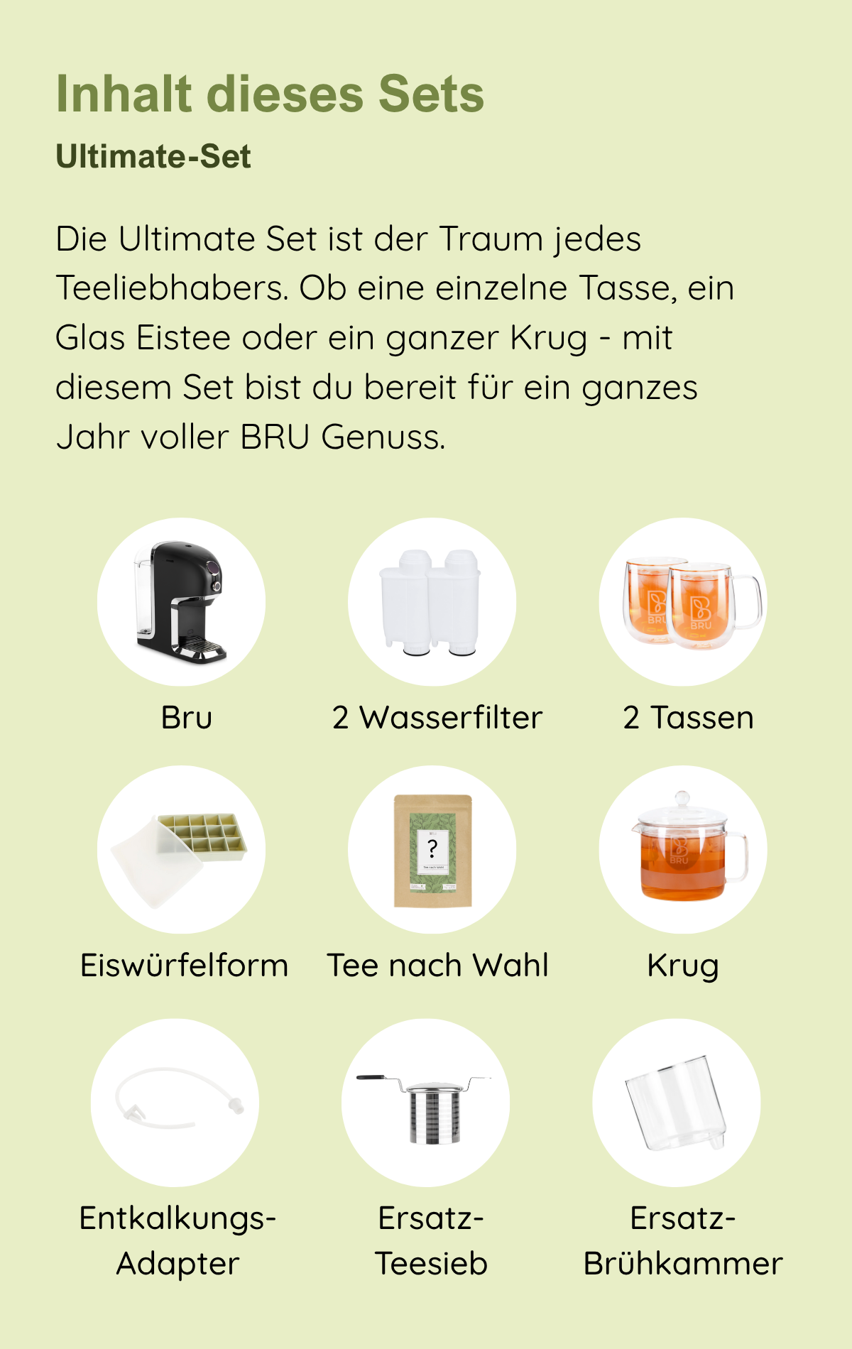 Mach’s dir gemütlich mit dem BRU Ultimate-Set. Für heisse Teemomente & eiskalte Erfrischung. Perfekt als Geschenk.